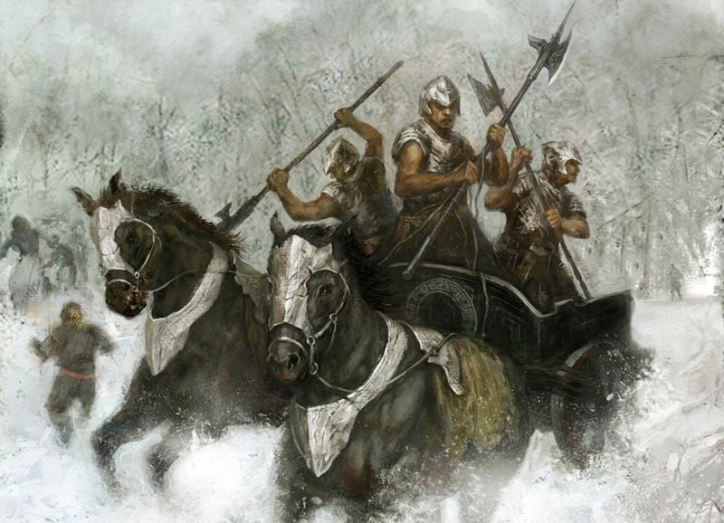 Son expertos jinetes, y van a la batalla montados en unos carruajes de donde sacan el nombre de sus tribus, usan armas y armaduras de todo tipo. Son despiadados y tienen un profundo odio a los pueblos libres, a los cuales masacran y saquean cada vez que tienen oportunidad.